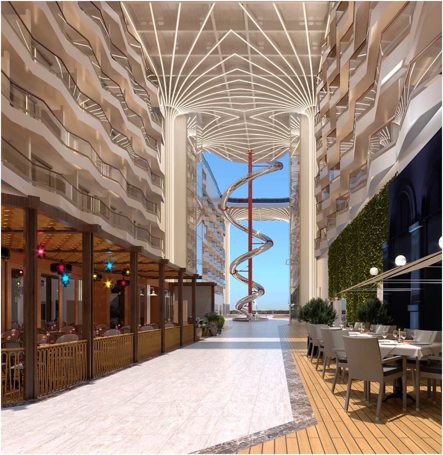 • Самая длинная сухая горка в море – прокатитесь с 20-й на 8-ю палубу