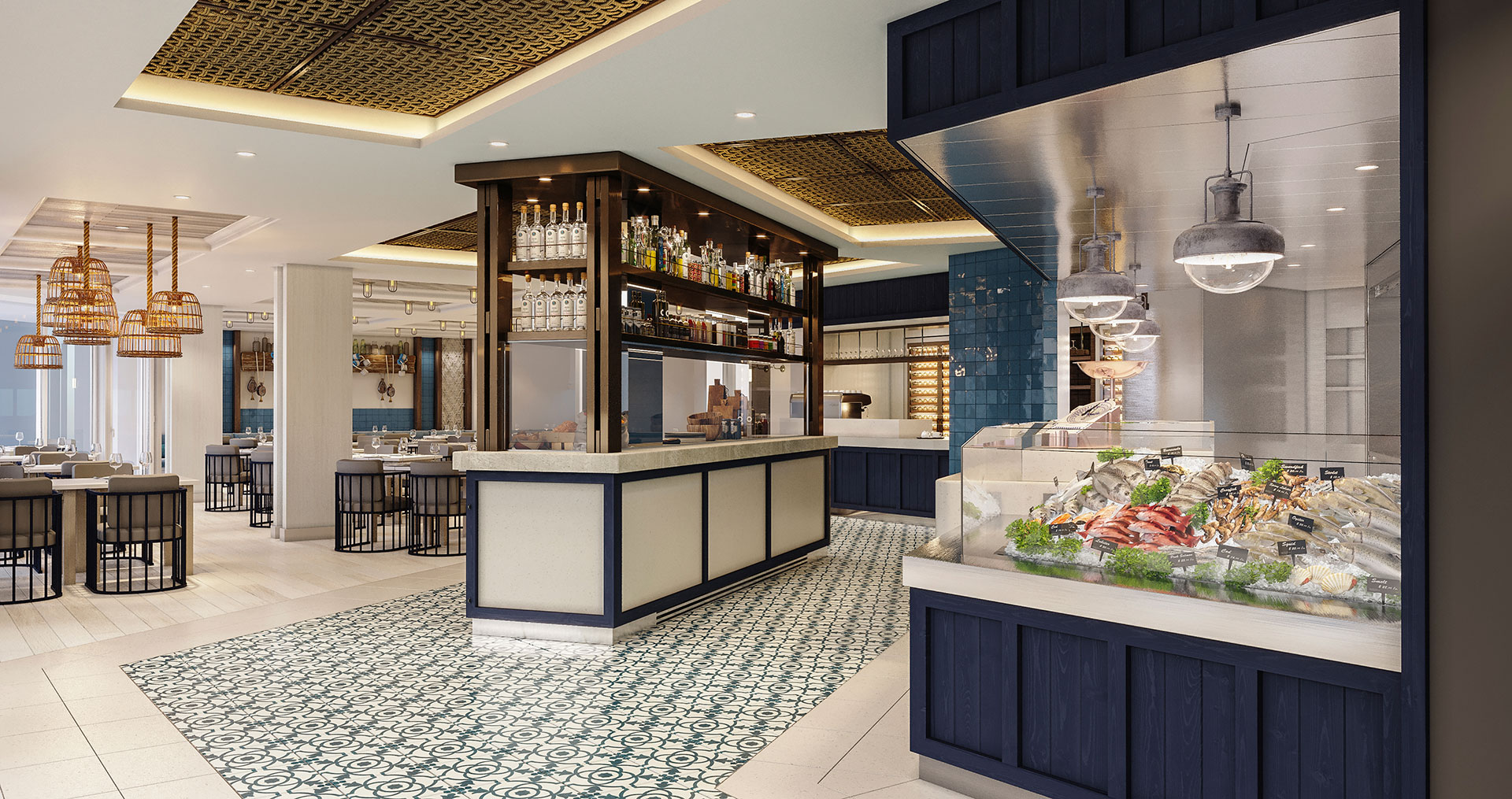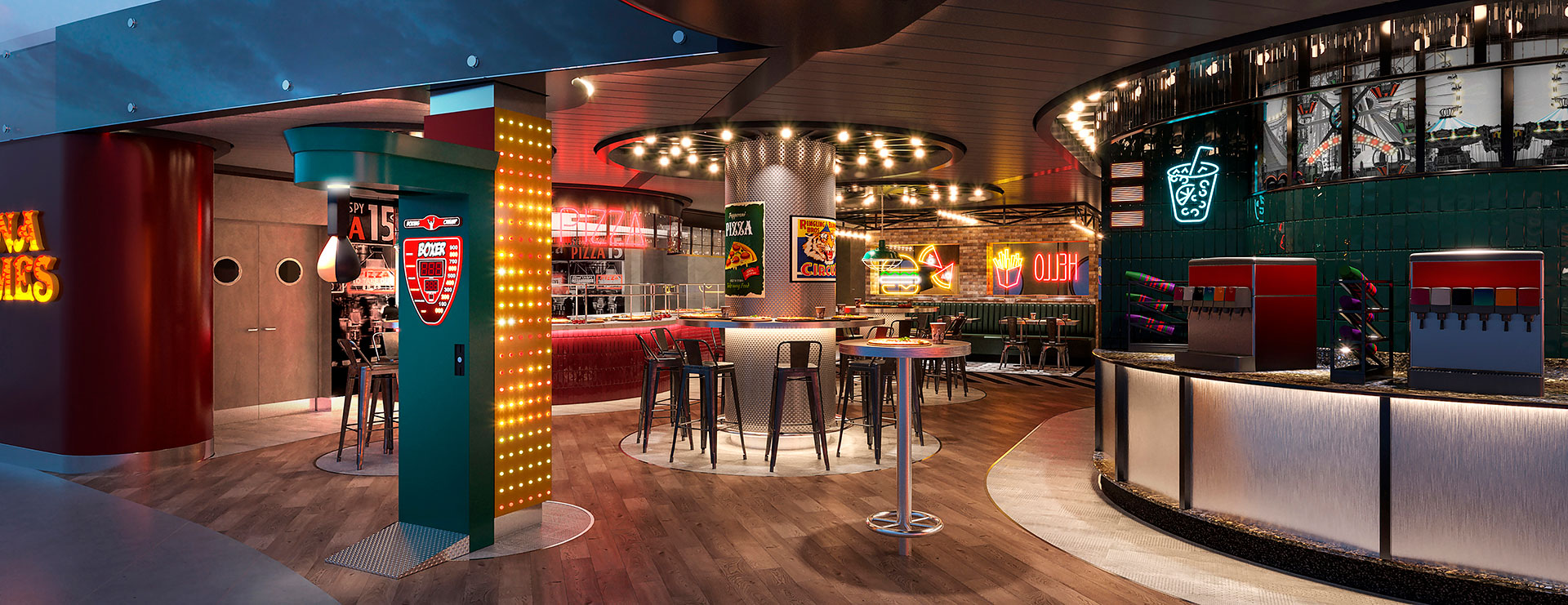 Тематические вечера в ресторанах, ежедневно обновляемое меню, детское меню, разработанное совместно с Chicco, шведский стол с тематическими уголками: пиццерия, гриль, здоровое питание, выпечка и т.д. На лайнерах работают винные бары, коктейльные бары, SPA- и кофе-бары, пабы, где подают различные сорта пива, виски и крепкий алкоголь, витаминный бар со свежими фруктами.